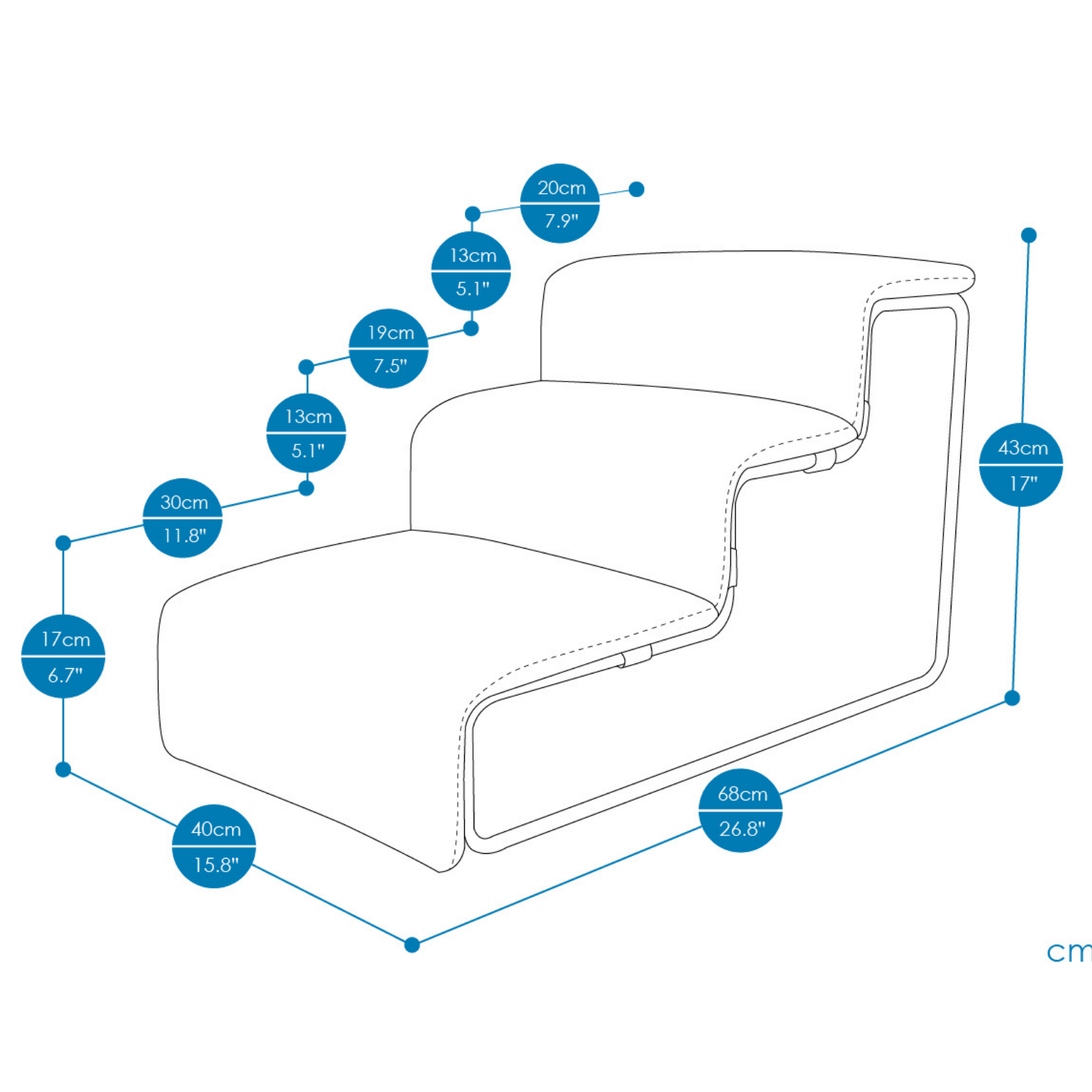 Steps Height Dimension: 1st Step H 17cm, 2nd/3rd Step H 13cm
