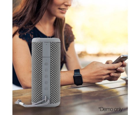 The speakers feature a resounding bass and trebles through its 8w twin speakers. Other features include innovative TWS function that lets you sync up to another speaker for great left and right channels sound effect, 10m Bluetooth range, aux-in input, up to eight hours of play time, USB charging and not least, a built-in microphone for hands-free phone use.